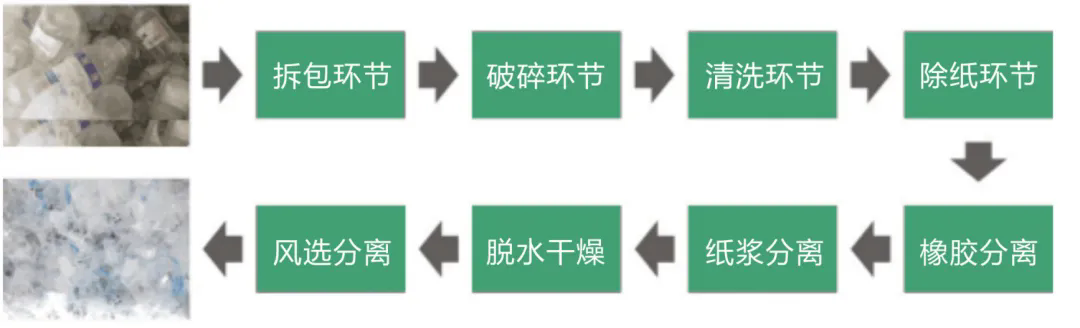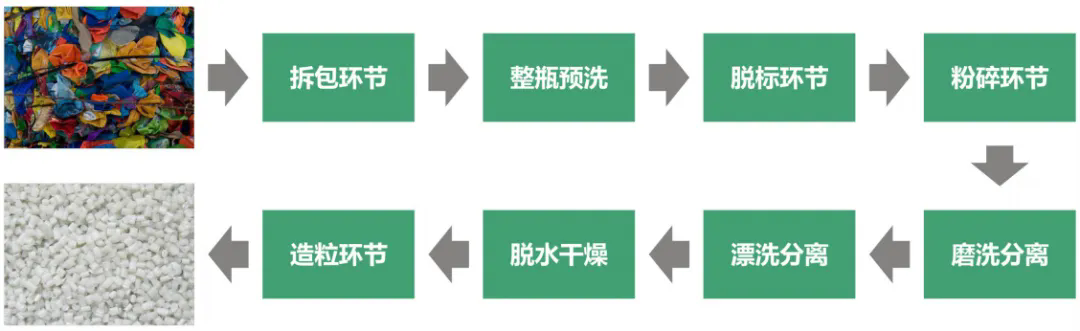 整套设备从拆包到破碎-清洗-除纸-除橡胶-干燥-分离瓶嘴料均可全自动化流水生产。生产出来的成品颗粒基本达到了新料的品质,广泛用于注塑挤出、加工造粒等领域。